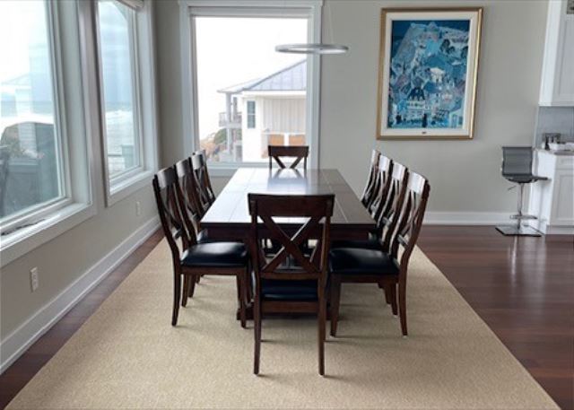 With the main living area on the top floor and surrounded by windows, you will have amazing views. A large deck with inviting furniture will entice you to get up early to enjoy the sunrise over the ocean, then stay there all day.